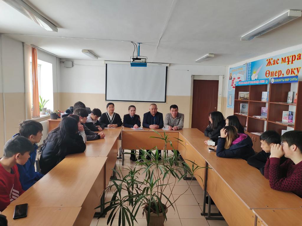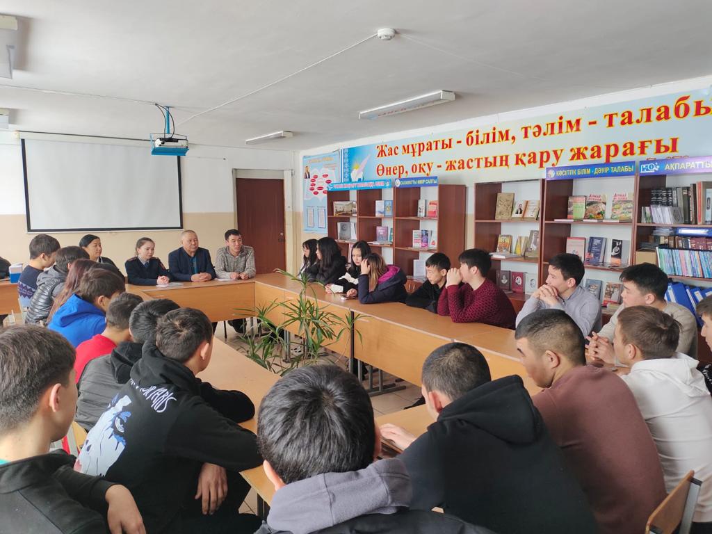 Іс шара барысында жастар арасында интернетке тәуелділік, психологиялық кемек керсету жене алдын-алу бойынша токталса, учаскелік полиция инспекторы полиция лейтенанты С.Р.Хаджимуратова, жастар арасындағы құқықбұзушылық бойынша ақпараттар берілді.