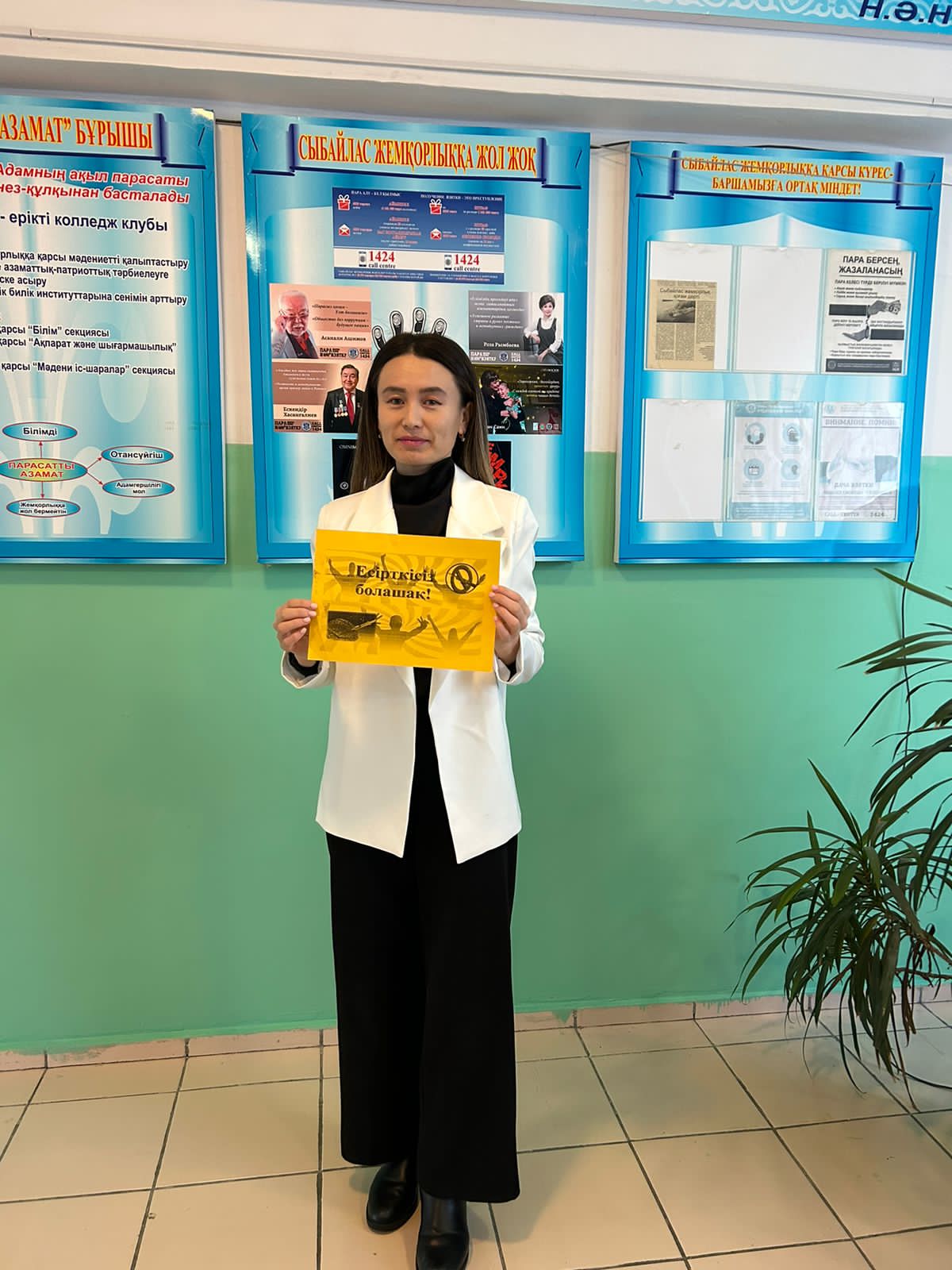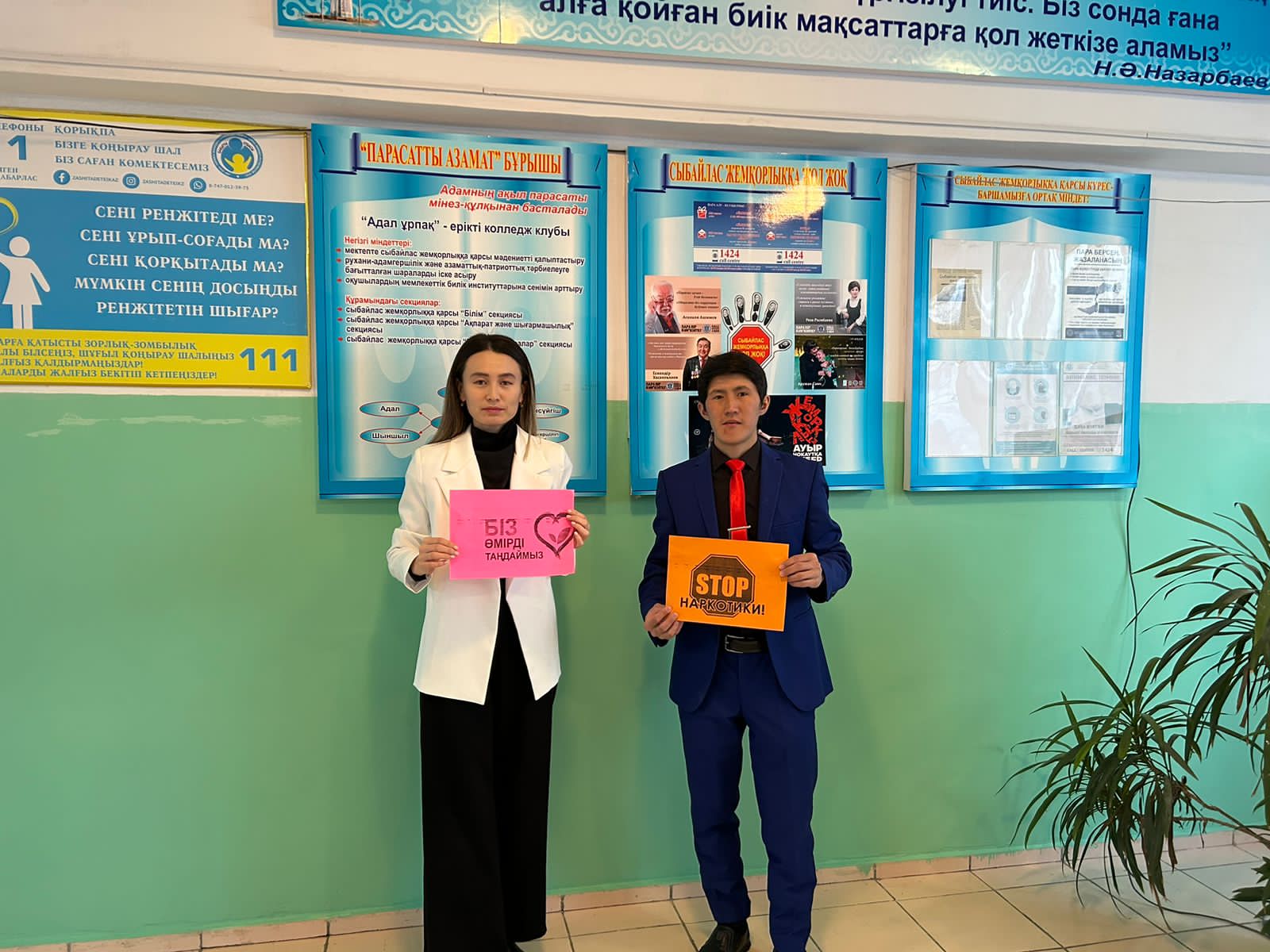 Алакөл гуманитарлық – техникалық колледжінде Жастар ісі-жөніндегі инспектор: Естемес Айгерім Нұрланқызының ұйымдастыруымен «Есірткісіз болашақ» атты акция аясында таңғы жиын өтті. «Ғасыр дертіне тосқауыл» тақырыбында баяндама оқылып ішімдік, нашақорлық, темекі туралы студенттерімізге мағұлмат берілді.