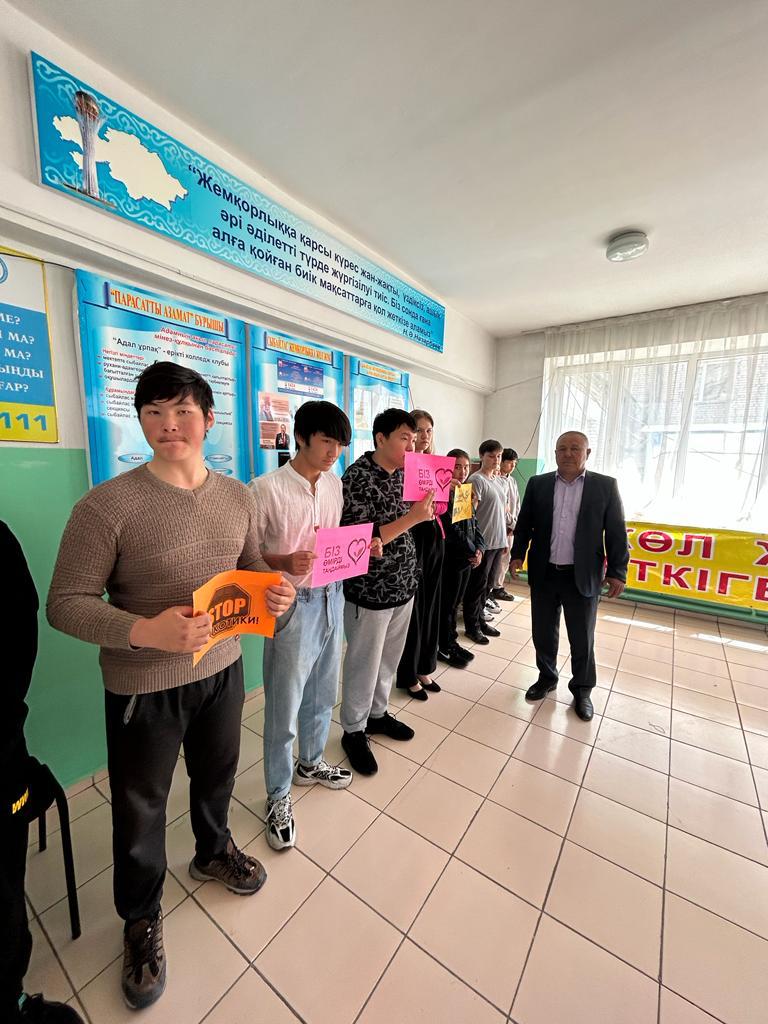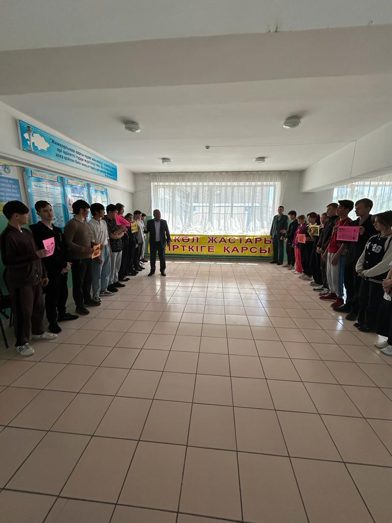 Салауатты өмір сүрейік, спортпен айналысайық, «Салауатты өмір салтын ұстанайық» деп «Нашақорлық-ғасыр індеті» тақырыбында таңғы жиынды қортындылады.