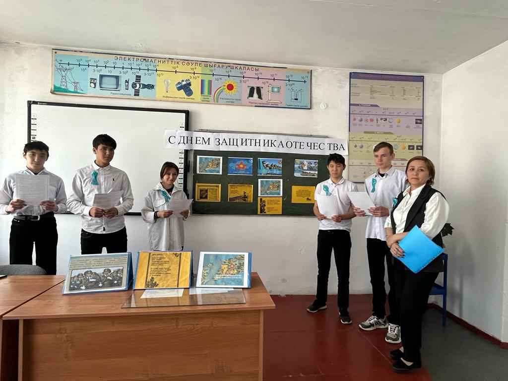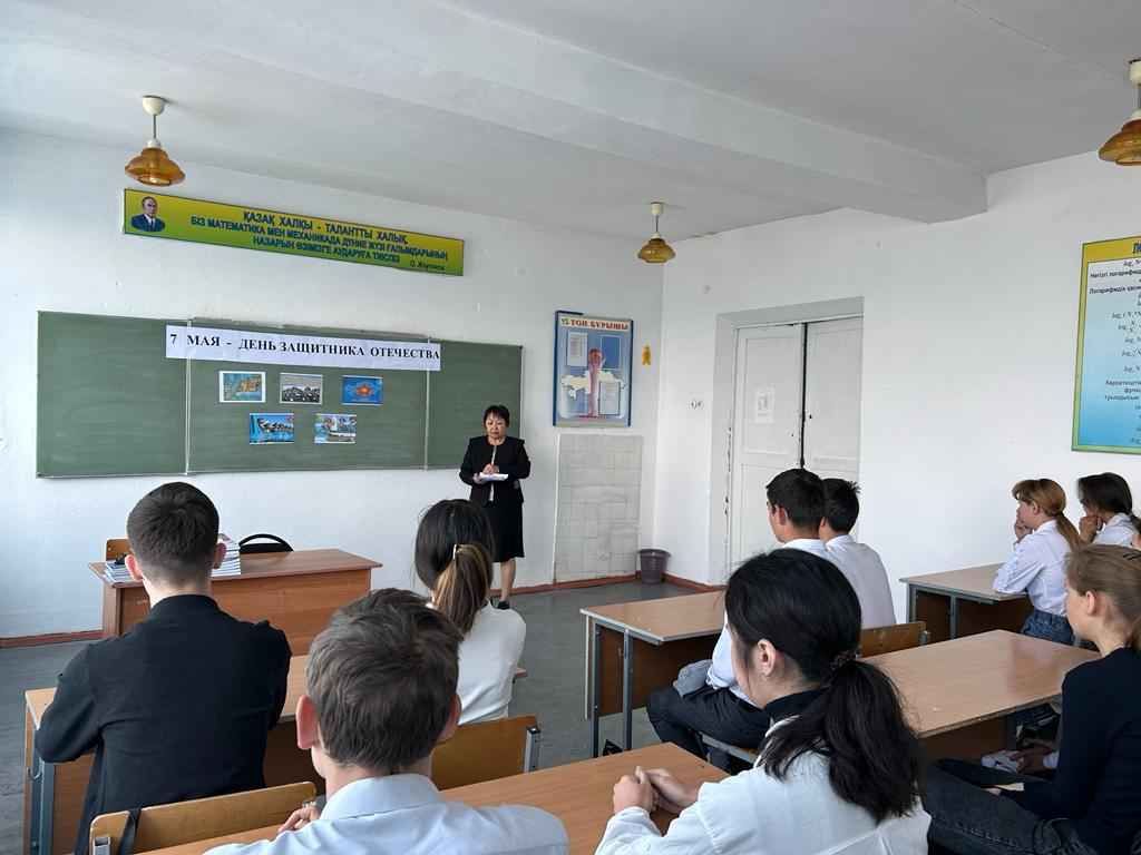 04.05.2023 жылы Алакөл көпсалалы колледжінде 7 – мамыр «Отан қорғаушылар күні» мерекесіне орай Сеитказинова А.Е. және Калиханова Ж.А. топ жетекшілерінің ұйымдастыруымен «Ұранды ердің — ұрпағы қайсар» атты тақырыбында тәрбие сағаттары өткізілді. Мақсаты: Білім алушыларға Ұлы Отанды сүюге, ерлік көрсеткен батырлардың бойындағы ержүректілік, отан сүйгіштік, ұлтжандылық қасиеттерін дәріптеу. Отанын, елін қорғай білуге тәрбиелеу.
