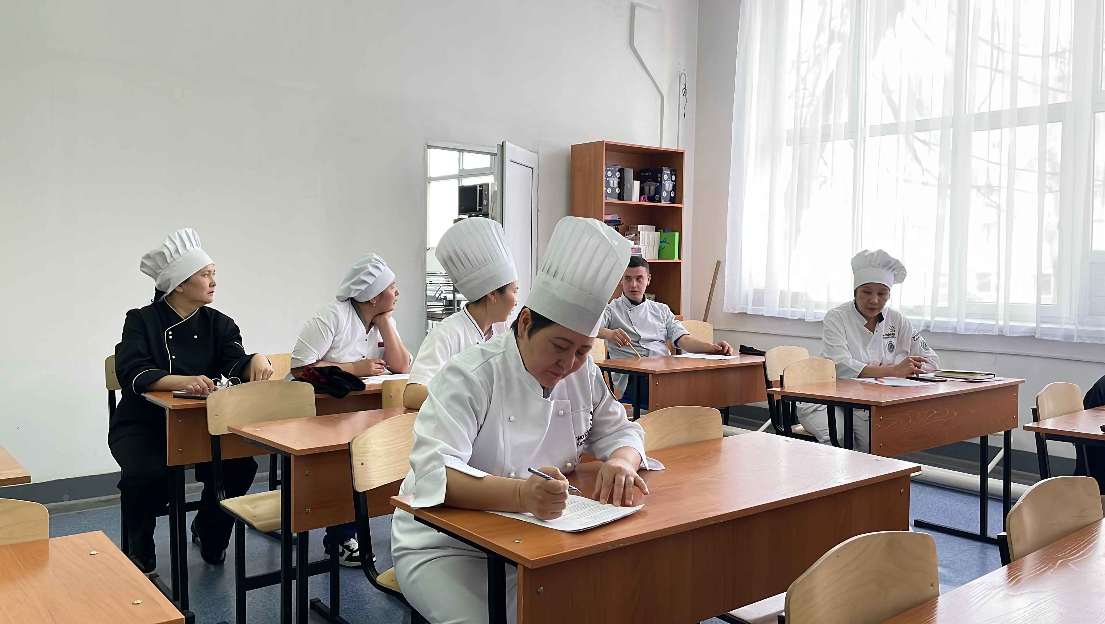 7. Жаркент көпсалалы колледжінің білім алушылары қатысты. Айта кету керек, байқау бір деммен өтті. Іс-шараның алғашқы минуттарынан бастап барлық білім алушылар жұмысқа белсене кірісті, тапсырманы қуана орындады. Әрбір қатысушы үздік болып, өзінің кәсіби шеберлігінің жоғарғы пилотажын көрсеткісі келді. Байқауды Талдықорған қаласындағы тәуелсіз сарапшылар, мейрамханалардың аспаздары бағалады: